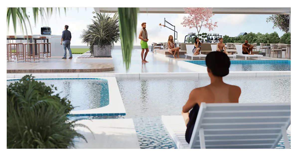 The Children’s Play Area at Bonito offers a vibrant and safe environment for kids with modern play structures, a swimming zone, a sandpit, soft flooring, and interactive features. Surrounded by lush greenery and shaded seating, it’s a perfect spot for children to play.